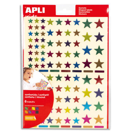 APLI KIDS Pochette de 6 feuilles (624 u) de gommettes enlevables étoiles couleurs peps