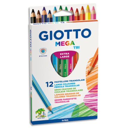 GIOTTO BE-BE Etui de 12 crayons de couleur BE-BE maxi bois + taille-crayons, mine large 7 mm