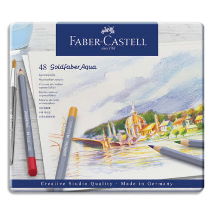 Goldfaber et Goldfaber AquaCrayons de couleur, forme hexagonale, haute qualité. Pour l’apprentissage des Beaux Arts.Étui de 48 aquarellables