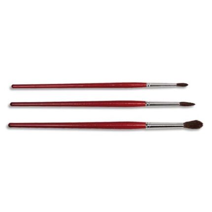 Pinceaux poney Manche bois laqué, virole alu monobloc sertie. 3 tailles assorties : 6 / 10 / 14. Longueurs :