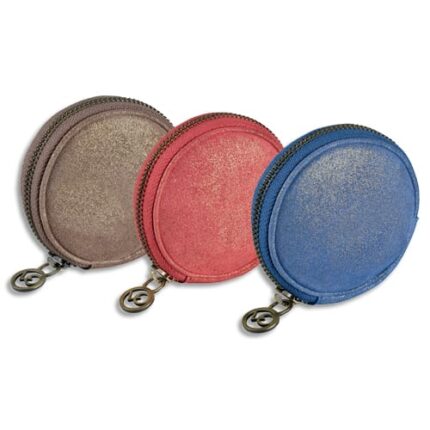 QUO VADIS Porte-monnaie rond Julo Adèle en cuir de vachette pailleté 9x9x4cm. Coloris assortis