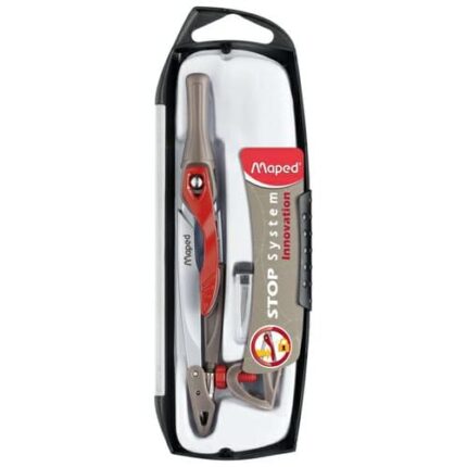 STOP SYSTEM INNOVATIONCoffret compas mine avec étui mines et bague universelle.Nouveau système STOP intuitif sans manipulation. Serrage des branches efficace