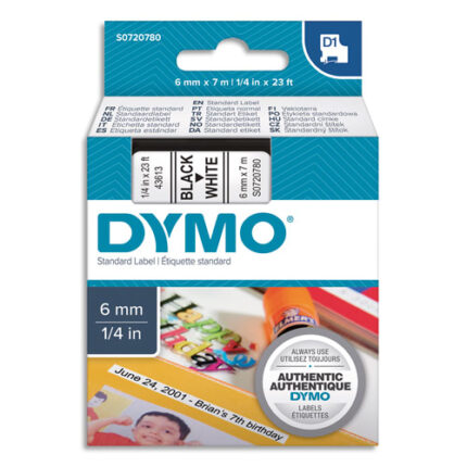 Étiquettes résistantes D1 DYMO® *Créés spécifiquement pour les étiqueteuses Dymo LabelManager.Résistent à la décoloration, décollement et à l’abrasion. Les étiquettes