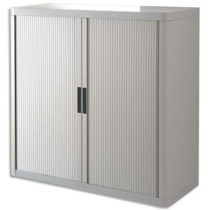 Armoire à rideaux EasyOfficeStructure métallique, corps en polystyrène teinté, résistant aux chocs et aux rayures.Rideau polypropylène, lamelles 15 mm, s’escamotant