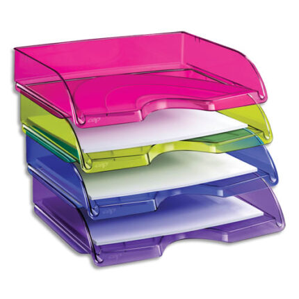 Set de 4 corbeilles à la francaise chromé.En fil d’acier chromé. Indexation par porte-étiquettes. Corbeilles coulissantes.Patins antidérapants. Pour documents jusqu’au