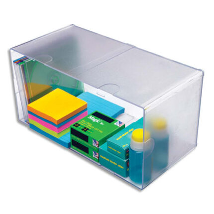 DEFLECTO Système modulable Cube 2 tiroirs en polystyrène – Dim. : L15,2 x H15,2 x P18,2 cm transparent