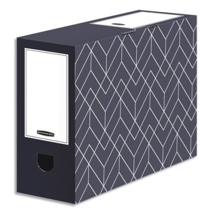 Boîte archive »BASIC »En carton ondulé Blanc imprimé Bleu 100% recyclé et recyclable sans acide. Zones d’indexation et œillets de préhension.Dimensions