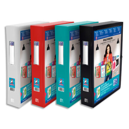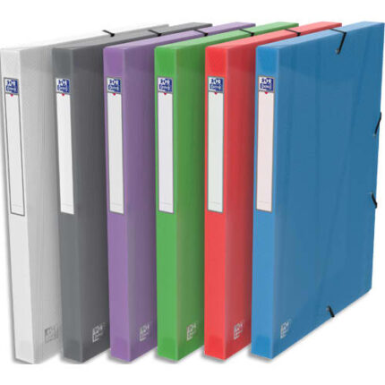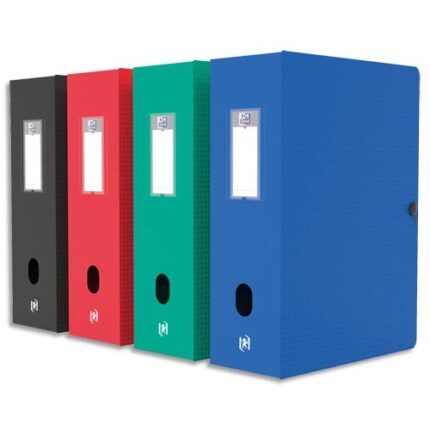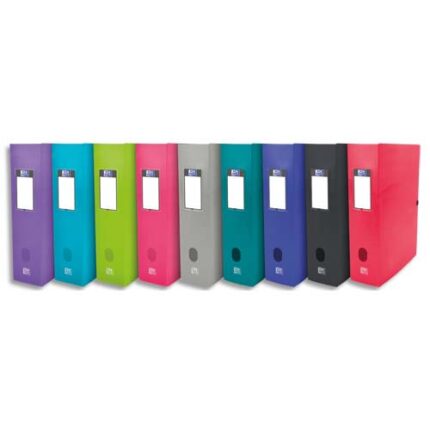 Boîte Memphis polypropylène En polypropylène opaque 7/10e. Grain structuré effet tissé, anti-traces. Dos préformé avec étiquette, oeillet de préhension et