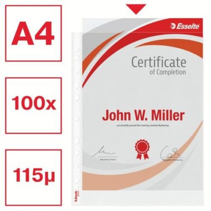 Pochette anti-transfert En polypropylène transparent, anti-transfert d’encre. Perforation 11 trous. En PP, 11/100e Boîte de 100. Grainé Produit éco-responsable :