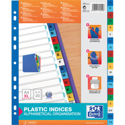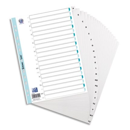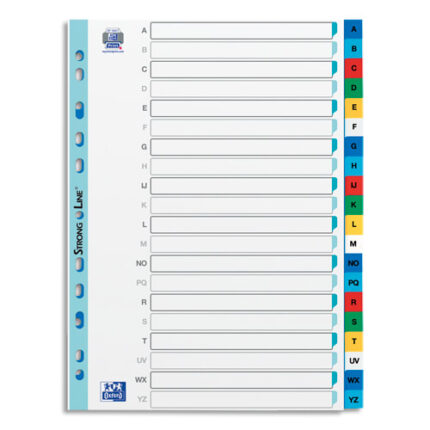 Intercalaire renforcéeEn carte Blanche 170 g. Touches colorées et renforcées recto-verso Mylar®. Page de garde lignée personnalisable. Bande de perforation