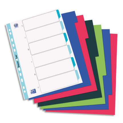 Intercalaire »COLOR LIFE »Coloris vifs.En polypropylène translucide 3/10e. Possibilité d’écrire directement sur les touches et d’effacer à l’aide d’une simple gomme.