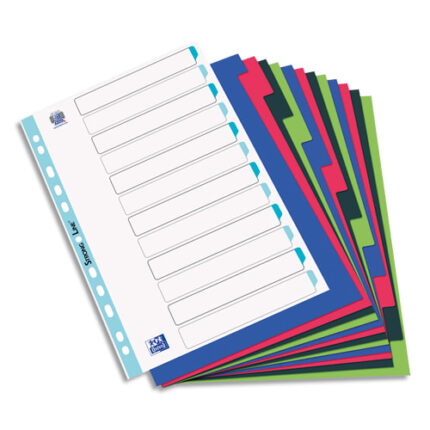 Intercalaire impriméColoris classique!En polypropylène opaque 12/100e. Page de garde personnalisable. Perforation 11 trous. Format A4.Numérique1-12 Produit éco-responsable : Recyclable à