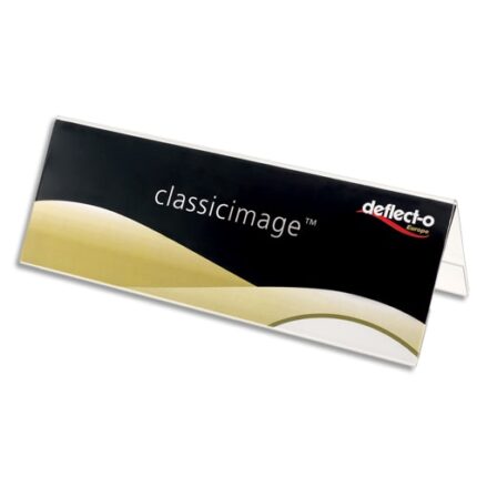 Porte-nom de bureauFaites durer vos présentations!En polystyrène transparent rigide 2 mm. Imprimez vos propres inserts pour une présentation de qualité.