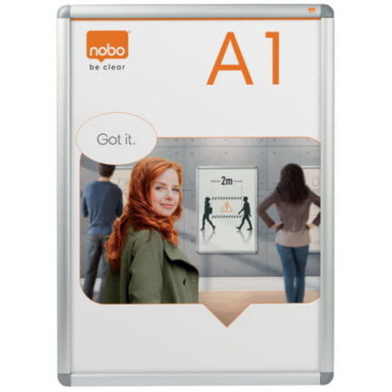 Vitrine porte-affiche clipsable Nobo, aluminium, antireflet en PVC, format A1.Vitrine porte-affiche clipsable pour l’affichage de posters et autres informations protégé