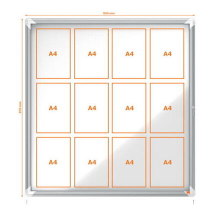 Vitrine d’affichage porte coulissante magnétique Premium Plus Nobo, 12xA4.Excellente surface magnétique pour afficher vos communications en toute sécurité à l’intérieur.Les