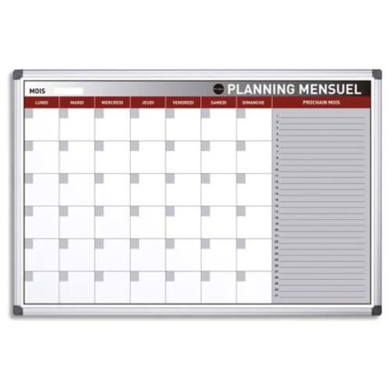 Planning perpétuel magnétiqueEncadrement en aluminium. Surface magnétique, effaçable à sec. Livré avec marqueurs, repose-stylos, aimants et kit de fixation murale.Planning