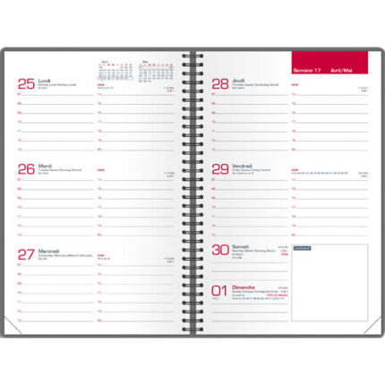Grille connectée à votre smartphone via ScribZee. Carnet d’adresses détachable, marque page. 1 semaine/2 pages, Janvier à Décembre. Couverture semi-rigide