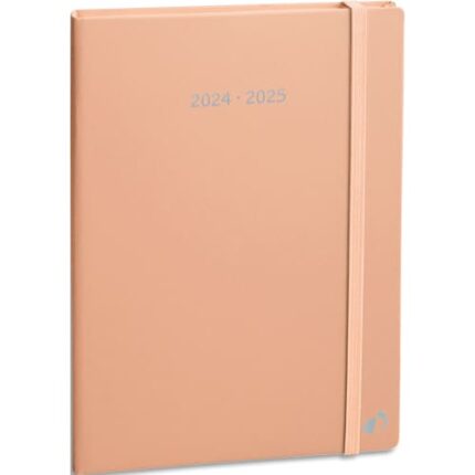 Agendas en papier recyclé. Impression certifiée Imprim’vert® encres végétales. Couverture amovible au grain élégant et aux couleurs acidulées. Avec répertoire.