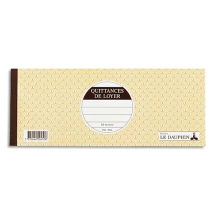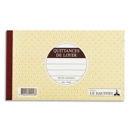 LE DAUPHIN Carnet quittance de loyer à souche 11×27,5 cm 50 feuillets