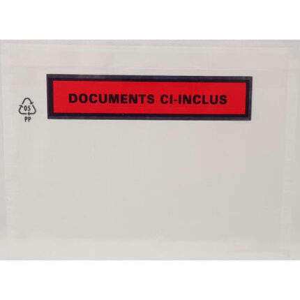 Pochette d’expédition  »Documents ci-inclus »Pour insertion des documents d’expédition. Dimensions intérieures 225 x 165 mm, pour document A4 plié en 2.