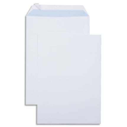 Pochette 90 g Enveloppe économique blanche. Fermeture auto-adhésive par bande siliconée. Fond bleu pour une opacité maximale. Produit éco-responsable :