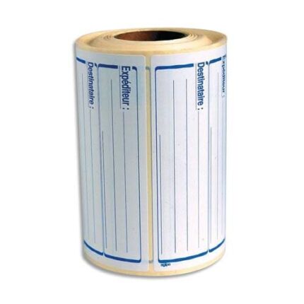 Etiquette d’expéditionPratique pour petits et moyens colis!Adhésive pré-imprimée avec mention :  »Envoi de / Destinataire ».Rouleau de 500 étiquettes.Dimensions : 12,5