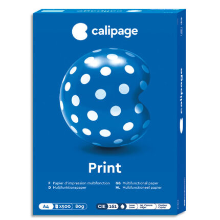 Ramette de 500 feuilles CALIPAGE PRINT Multi-usages pour des impressions impeccables ! Format A4. CIE161. 80 g. Très blanc, blanchi