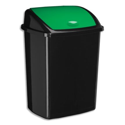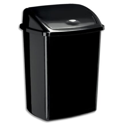 Poubelle en plastique à couvercle basculant Plastique polypropylène noir. Résistant et facile à entretenir. Couvercle basculant. Contenance : 50 litres.
