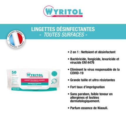 WYRITOL Paquet de 50 Lingettes Désinfectantes multi-usages à l’essence de Niaouli