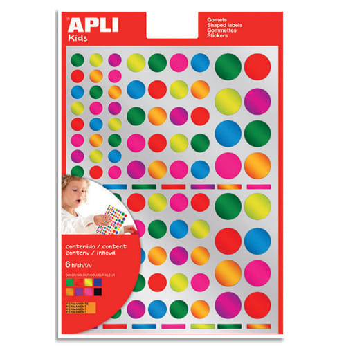 AGIPA Sachet de 6 feuilles, 624 gommettes rondes assorties métallisées adhésif permanent D1, 1,4 et 2 cm
