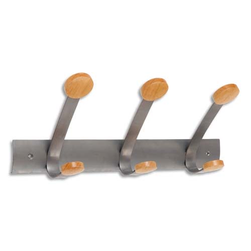 ALBA Bloc de 3 doubles patères et crochets en métal et bois jusqu à 20 kg – Dim: L45 x H17,4 x P11 cm