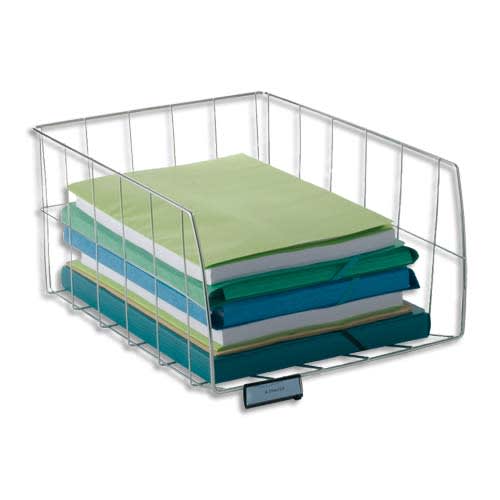 En fil d’acier chromé. Indexation par porte-étiquette. Pour documents format 24 x 32 cm.