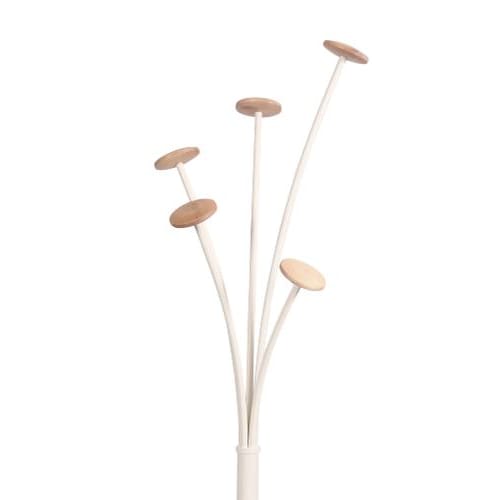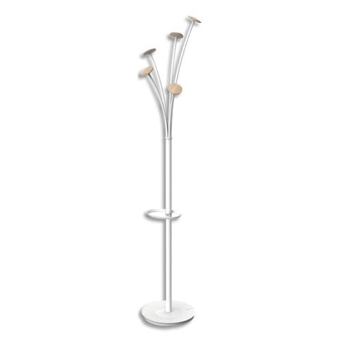 ALBA Portemanteau FESTIVAL 5 patères, porte-parapluie. Base lestée. Montage sans outil. Bois clair/Blanc