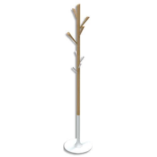PAPERFLOW Portemanteau EASYCLOTH 6 patères polystyrène Blanc, fut bois massif hêtre, H178 cm et porte-par