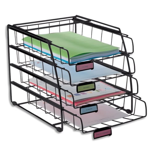 ALBA Set 4 corb courrier coulissantes à la française, fil métal chromé. Dim (lxhxp): 31,5x31x38,5 cm.Noir