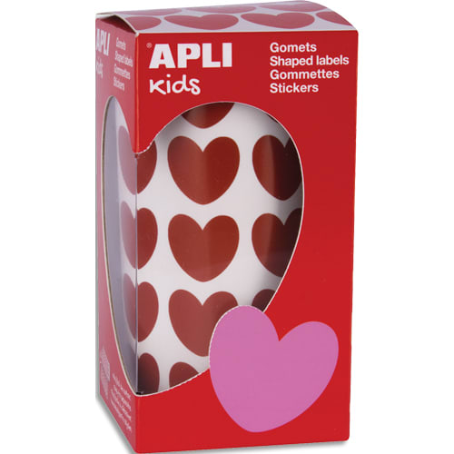 APLI KIDS Boîte de gommettes en rouleau forme coeur 20 x 18 mm, couleur rouge