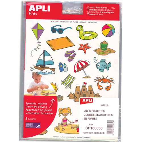 APLI Lot de 36 feuilles de gommettes, 12 thèmes assortis