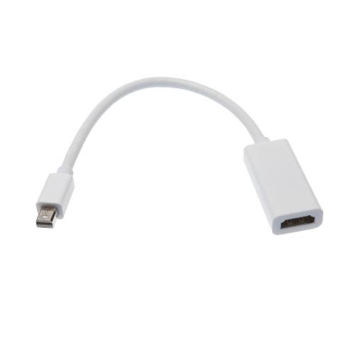Mini DisplayPort mâle / HDMI femelle, couleur du câble blanc avec connectique gold, dimensions 15cm.