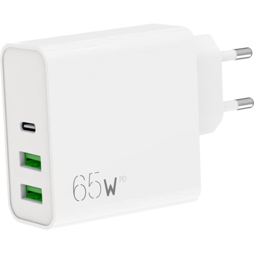 Chargeur secteur, triple, 2 usb-a / 1 usb-c, pd65w, blanc