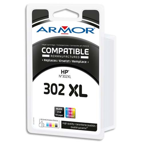 ARMOR Multipack de 2 cartouches compatibles Noir + 3 couleurs HP 302XL B10397R1