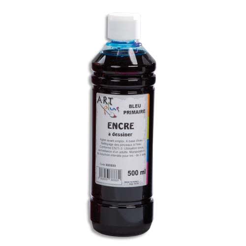 ART PLUS Flacon de 500ml d’encre à dessiner Bleu. Couleurs intenses, totalement aquarellable, fusante