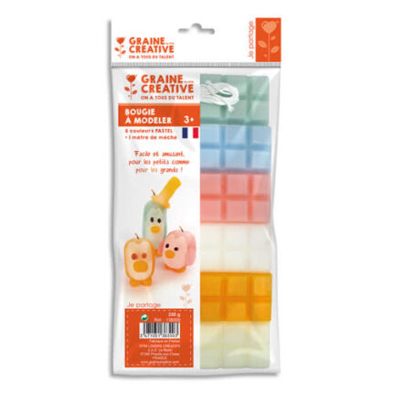 GRAINE CREATIVE 6 plaques de cire à modeler 240g, couleur pastel Ivoire, Orange, Blanc, Rose, Bleu, Vert