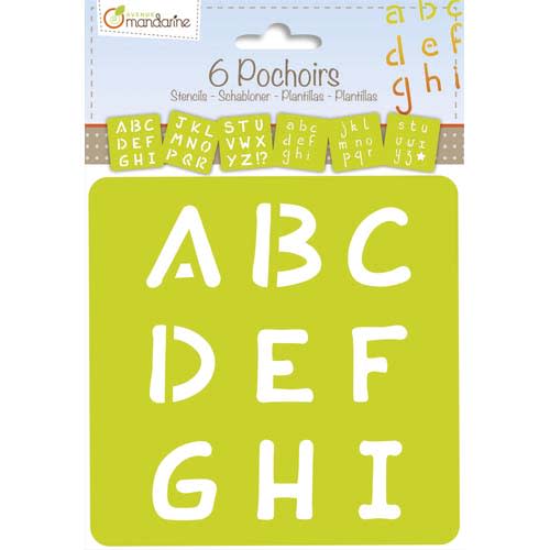 AVENUE MANDARINE Sachet de 6 pochoirs thème Alphabet majuscule, translucides, Dim. Lettres H3,5 x L2,5 cm