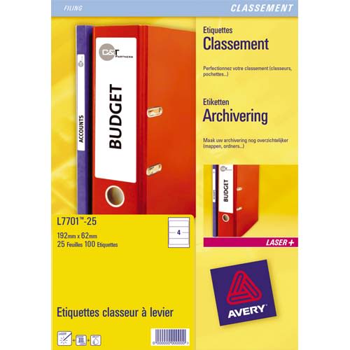 AVERY Boîte de 175 étiquettes Laser pour dos de classeur 192X38 L4760-25