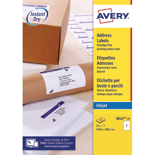 AVERY Boîte de 25 étiquettes Jet d’encre format 199,6×289,1mm