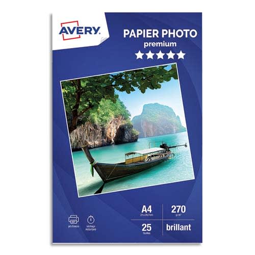 AVERY Boîte de 25 feuilles de papier photo brillant A4, Jet d’encre, 270 g.