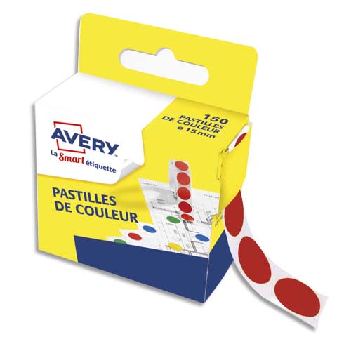 AVERY Boîte distributrice de 150 pastilles adhésives Ø15 mm. Coloris Rouge.