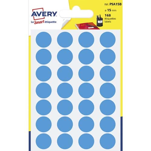 AVERY Sachet de 168 pastilles Ø15 mm. Ecriture manuelle. Coloris Bleu.