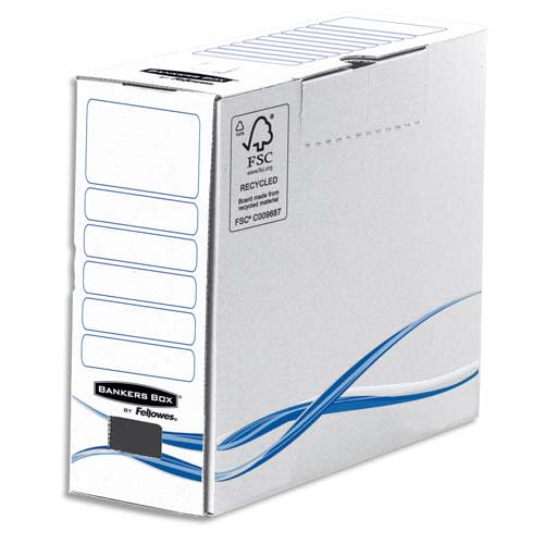 BANKERS BOX Boîte archives dos de 10cm BASIQUE, montage manuel, en carton Blanc/Bleu