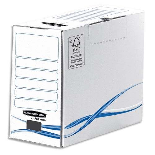 BANKERS BOX Boîte archives dos de 15cm BASIQUE, montage manuel, en carton Blanc/Bleu